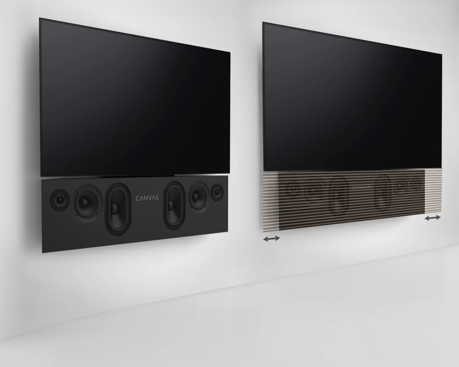 Im Grunde soll es eine "gute Musikanlage an der Wand" sein, geometrisch verbunden mit dem TV. Es soll optisch verschwinden und akustisch funktionieren. So etwas habe ich hier mal gesehen:
