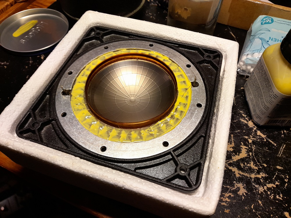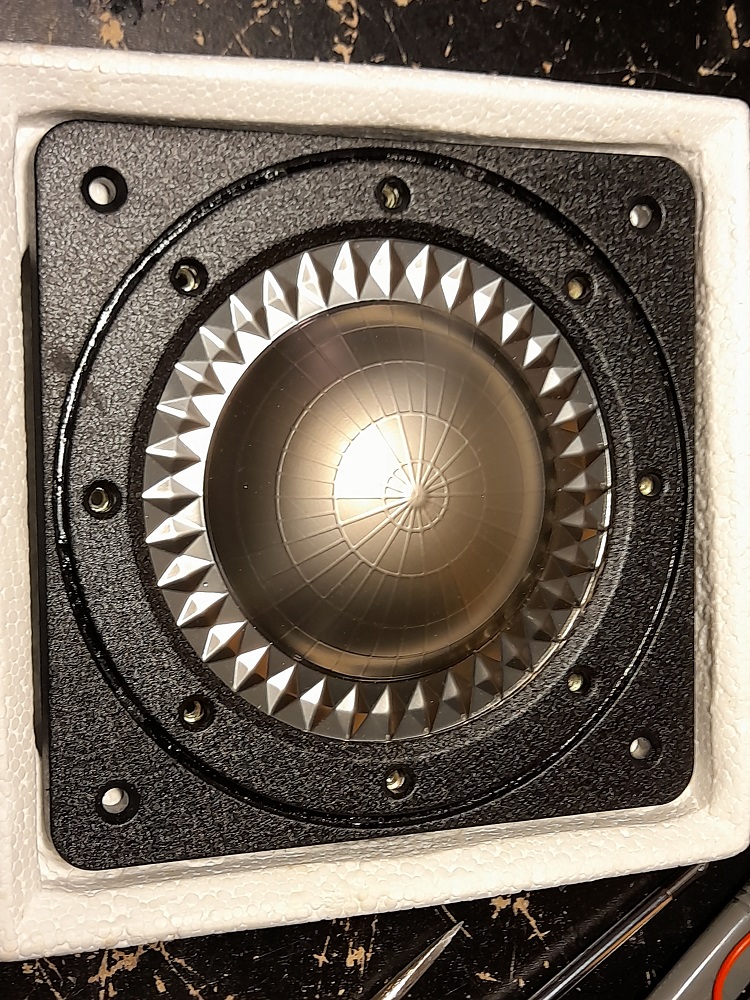 Wenn du jetzt ganz mutig bist könntest du die Kalotte in der Mitte ein wenig von hinten anstreichen, um den Frequenzgang nach oben raus etwas zu beruhigen.