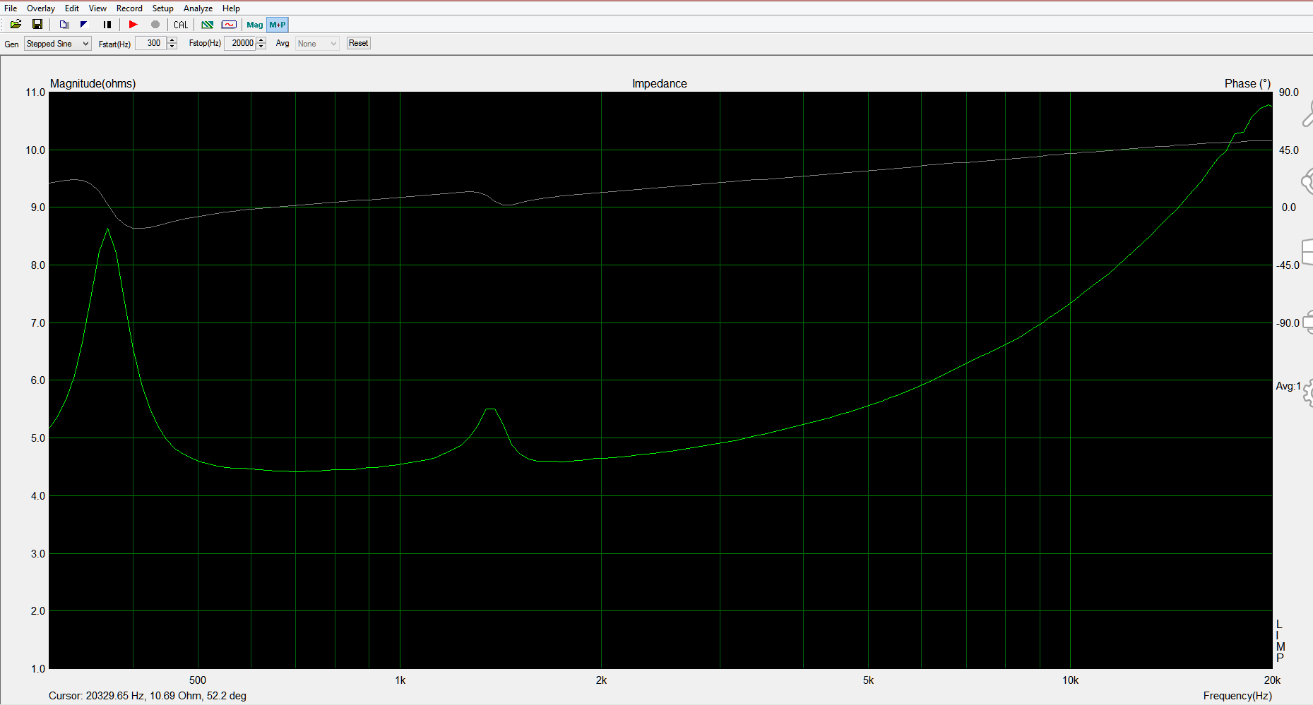 die Impedanzmessung wurde offen, d.h. ohne das Volumen der rückseitigen Abdeckung und ohne Schafwolle im Polkern gemacht. Die halbe Wellenlänge von 1k4 Hz ist ca. 12cm. Das ist zwar der Durchmesser des Abdecktopfes, aber der war ja nicht drauf.