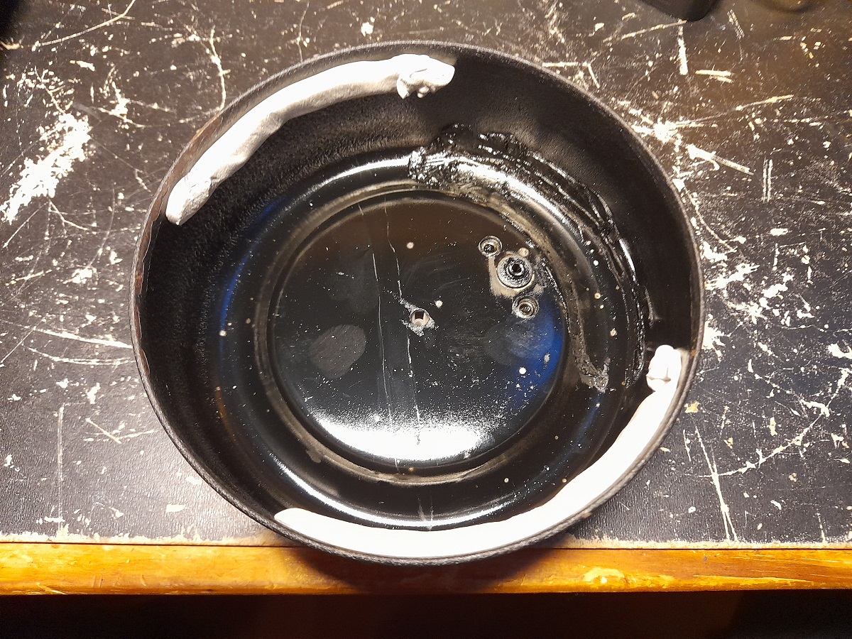 wie man evtl. auf den Bildern erkennen kann, müsste das Latex auch über die Schwingspulenzuleitung gepinselt werden, die angeklebt ist. Spiritus hat diesen Kleber m.E. nicht angegriffen.