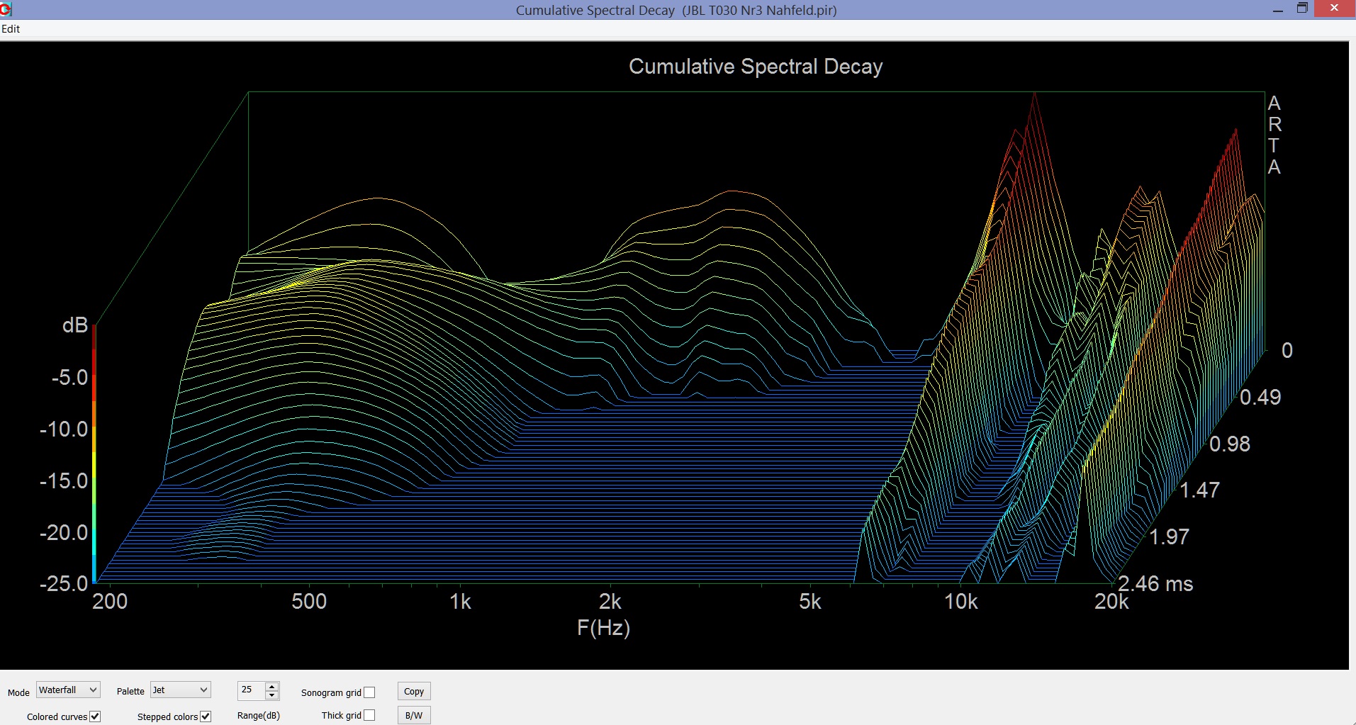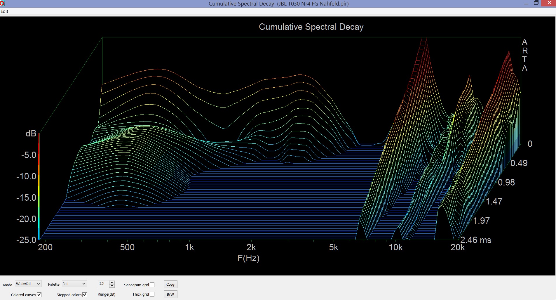 Dank der Knicke oder Diamant Muster in der JBL Sicke werden die Resonanzen durch die Versteifung in höherere Frequenzen verschoben. Wo sie weniger stören. Das liegt eher zwischen 5-20kHz. Daher glaube ich eher dass der zweite Impedanz Buckel eine Resonanz aus dem Rückvolumen ist und du mit der Bedämpfung weiter spielen solltest. Verschiedene Materialien und Positionen. Wolle, Basotect, Filze, Geschichtet etc…