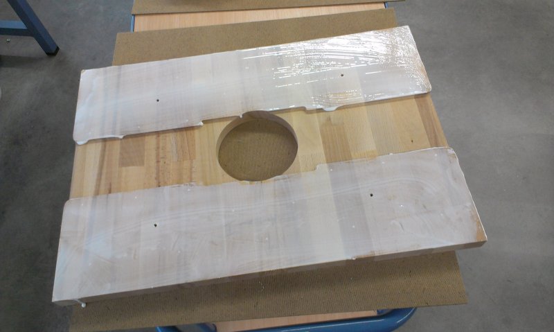 Das Holz für die aufgedoppelte Front und das der Rückseite ist schon vorhanden. Buche, geleimt, 26.5mm stark.