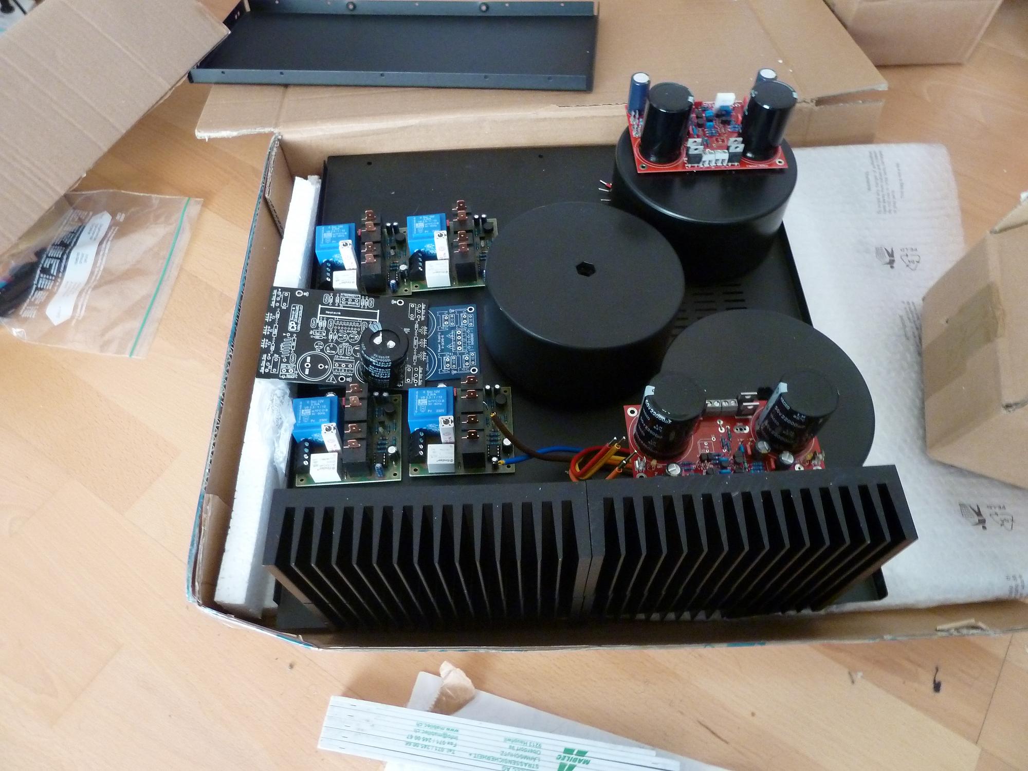 jaja so ganz untätig bin ich momentan auch nicht, mal kurz zwei fotos der neuen 8kanäligen lautstärkeregelung und von den neuen trafos und schutzschaltungen und den zwei neuen symasym`s
