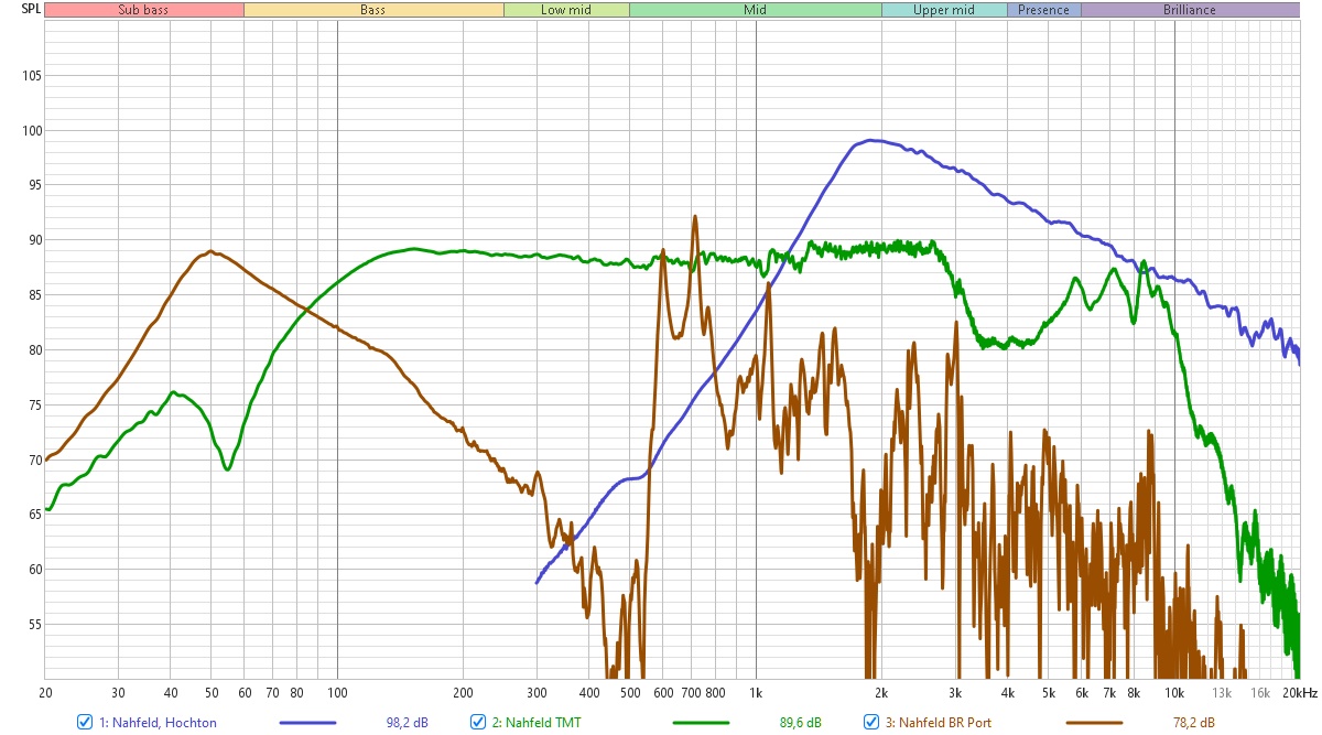 Sooo, mir hat das mit den Messungen keine Ruhe gelassen und ich habe mal kurz das Mikro im Nahfeld (2cm) an die Treiber und an den Port gehalten.