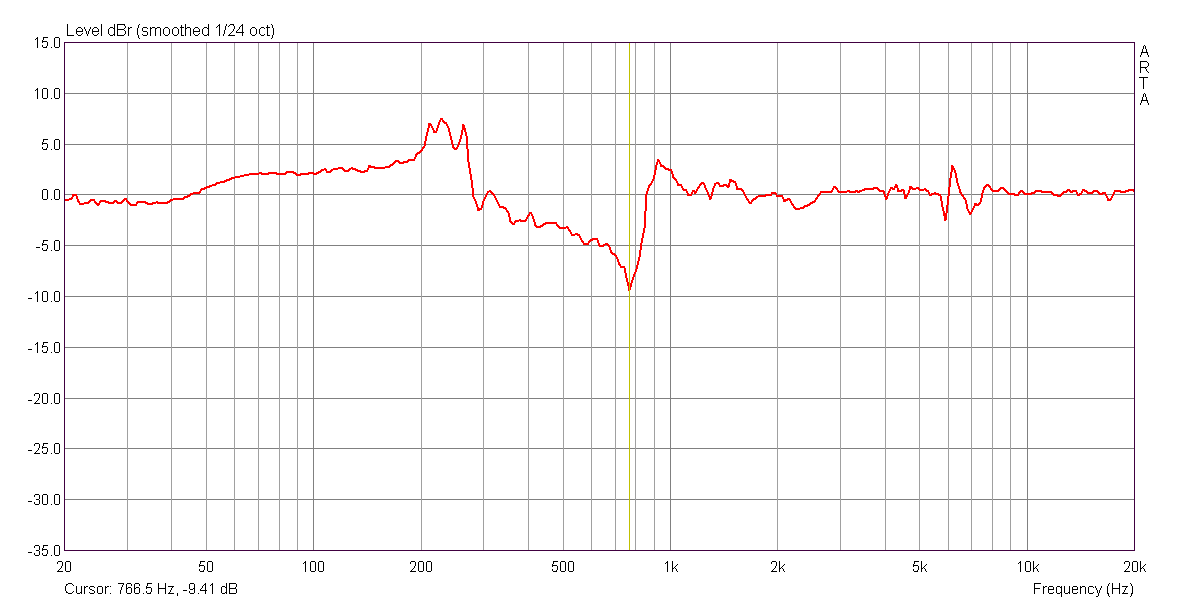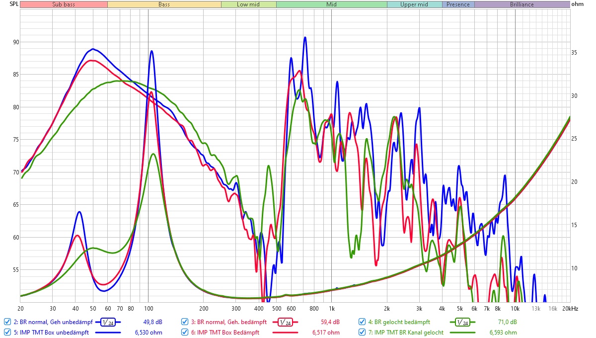 Im Impedanzgang des TMT sind jetzt außer der Reso des BR Rohrs selber keine "Pickel" mehr zu sehen. So weit so schön. Die Reso selbst ist auch minimal besser bedämpft.