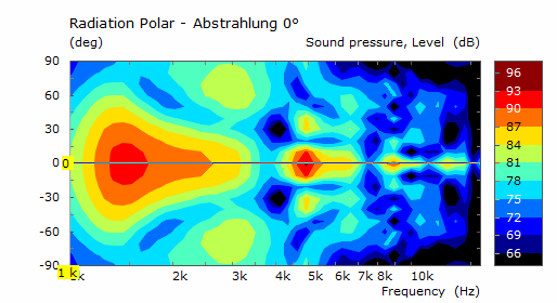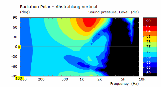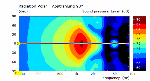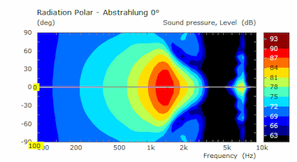 Das Abstrahlverhalten +/-90° des HT ohne Kegel on axis (0° = nach oben):