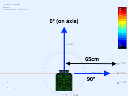 1002: 90° zur Seite in 65cm Entfernung. Höhe Gehäuseoberfläche (hatte erst später bemerkt, dass Du auf halber Kegelhöhe gemessen hast). Roter FR.