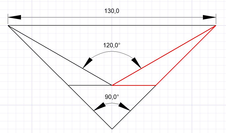 Die äußeren Lamellenkanten gehen von der Kegel-Oberfläche (d=130mm) zum Schallwandausschnitt (d=100mm). Wenn ich mich nicht verhauen habe, sollte das so aussehen (grünes Dreieck):