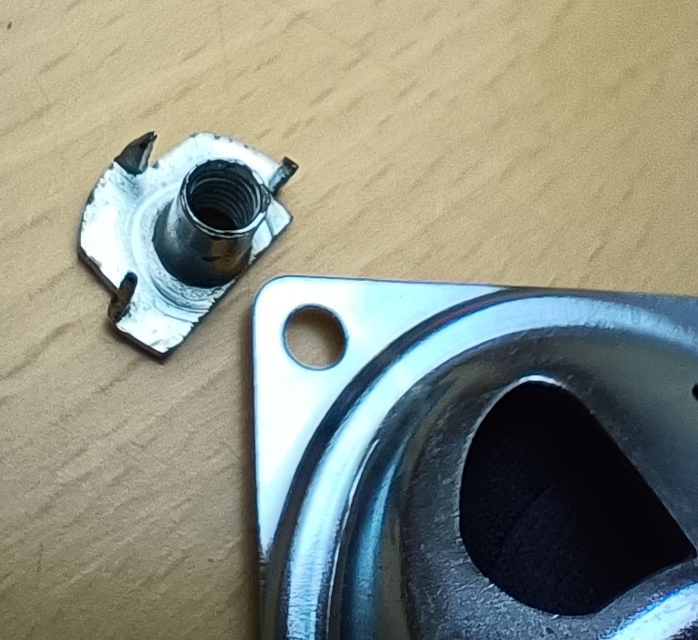 An Stelle der Einschlagmuttern hatte ich zuerst versucht Blindnietmuttern zu benutzen; schien mir nach weniger Arbeit. Das hat jedoch nicht so gut funktioniert. Zum einen bietet der Kragen weniger Klebefläche und zum Anderen zieht man die Schrauben später gegen den zur Verformung gedachten plastischen Bereich an. Da hatte ich Bedenken der könnte auf Dauer nachgeben und zur Lockerung der Schrauben führen; habe ich daher verworfen.