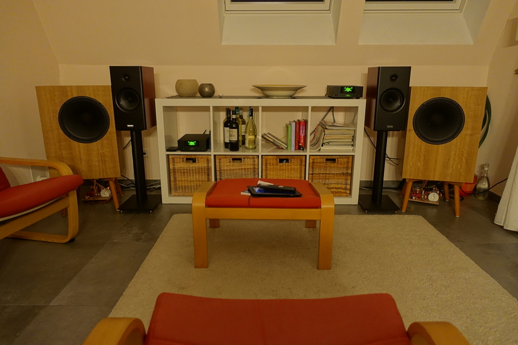 Zum Vergleich betreibe ich beide Lautsprecherpaare mit jeweils einem Naim Unitiqute2 und kann beiden die selbe Musikquelle über Netzwerk ohne Zeitversatz zuspielen.