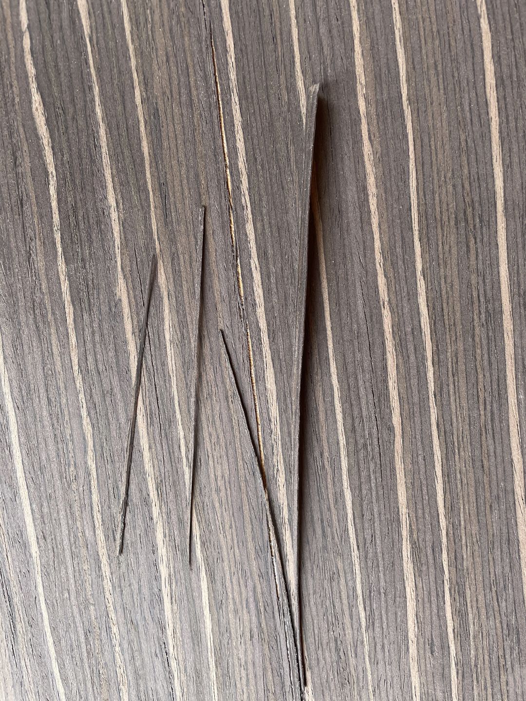 Ich habe extra breites Furnier gekauft um nicht Fügen zu müssen, dann hat es in aber schon viele Risse gegeben, trotz Wässern und vielen Verstärkungen durch Malerkrepband. Das war schon sehr zeitraubend und frustrierend.