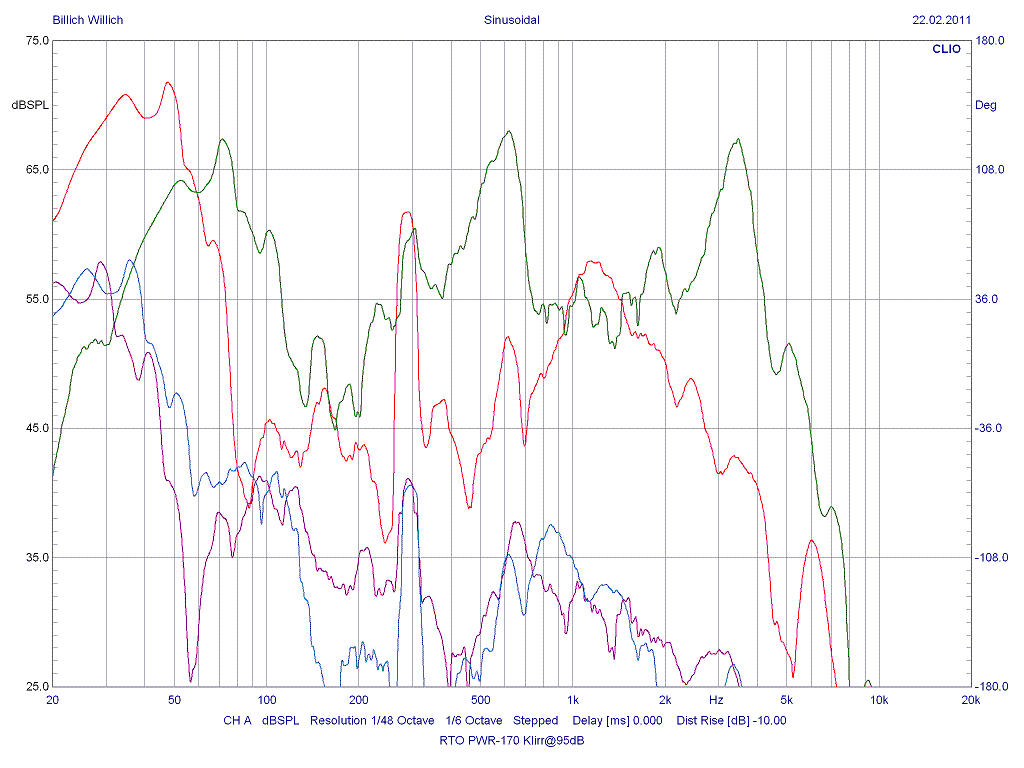Die Klirr- und IMD-Messungen fanden in einem Abstand von 30cm statt. Die Pegelwerte sind auf 1m korregiert.