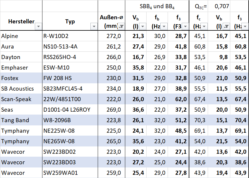Ich hab mir mal für meinen eigenen Subwoofer 'ne Übersicht gestrickt: