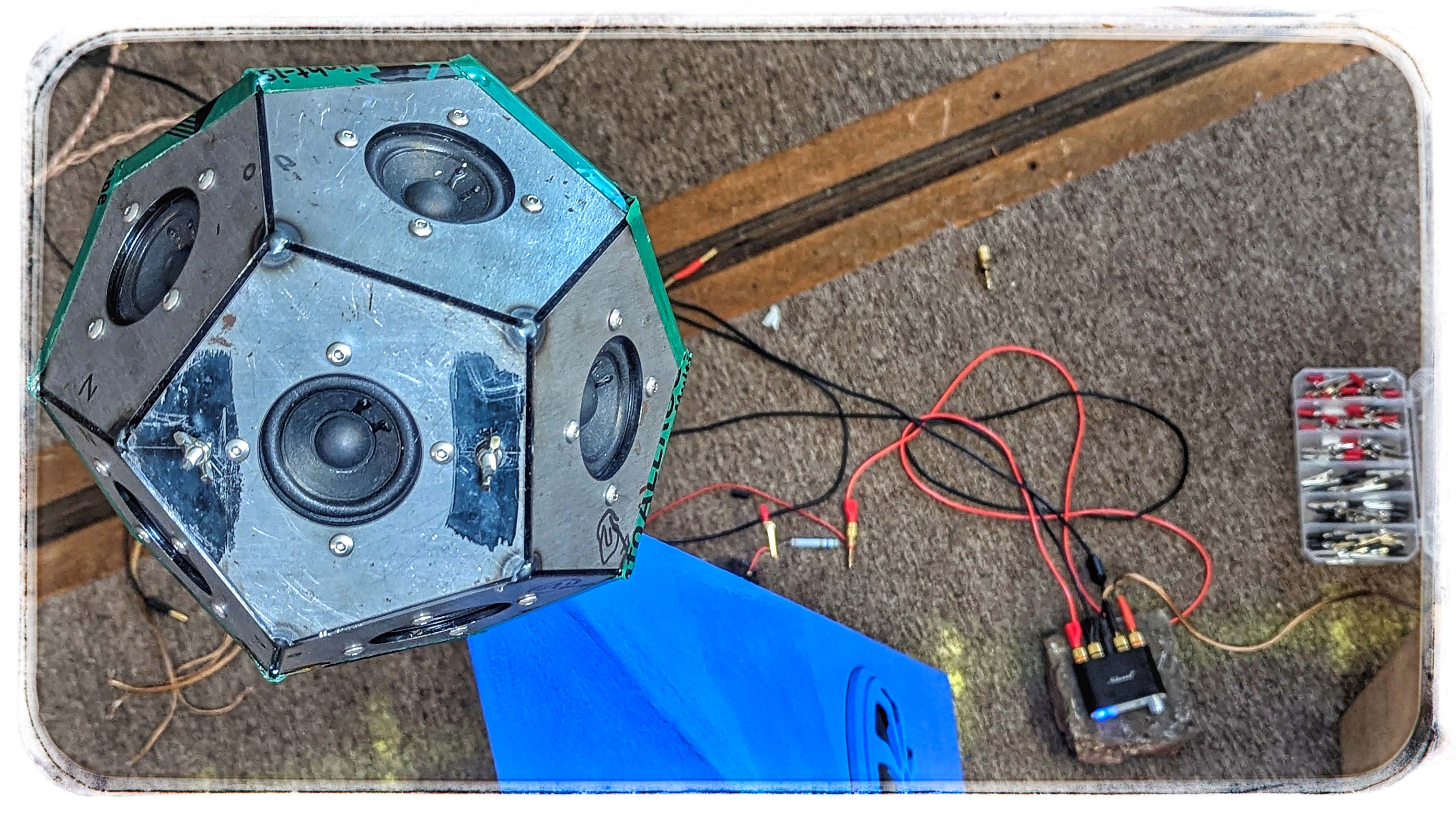 der kleine nobosound Verstärker verleiht der Pyramide schon wacker Klang. Mein Telefon ist Q-elle. Fehlt also nur*) noch TWS, 2-Wege Weiche, DSP und Akku-Verstärker...