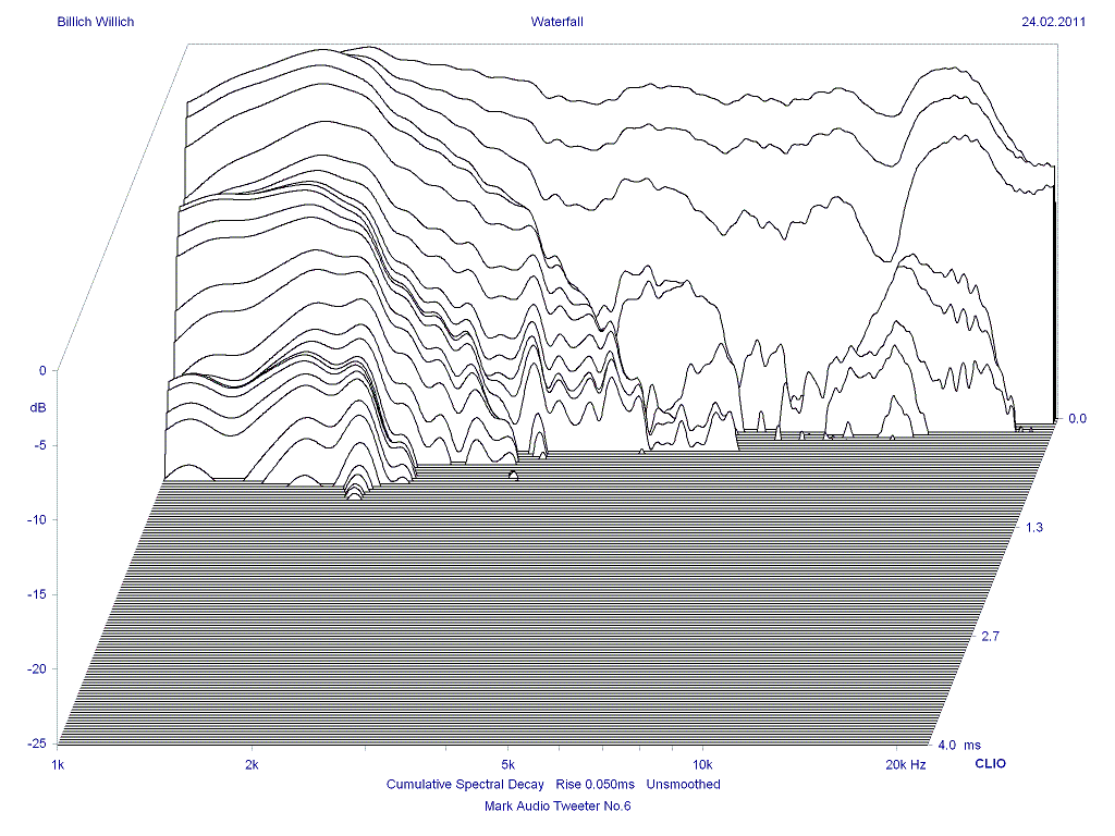 Der MA zeigt sich da fehlerfreier. Im Bereich der Resoanzfrequenz schwingt der MA etwas länger nach, was über die schwächere mechanische Dämpfung der Resonanz (höhere Impedanzspitze und Frequenzganganstieg) zu erklären ist.