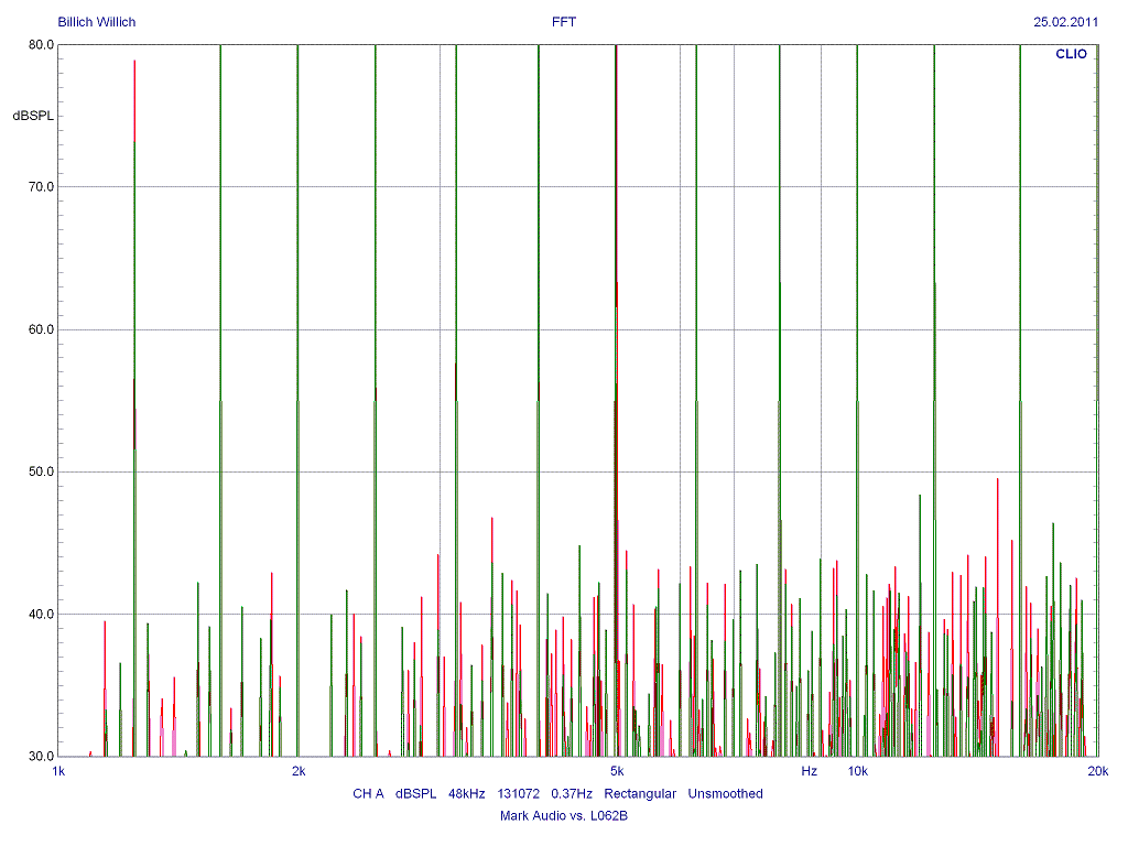 Hier liegt der MA klar vorne. Der L062B hat ein dichteres Netz an Modulationsverzerrungen und die Spitzen sind höher.