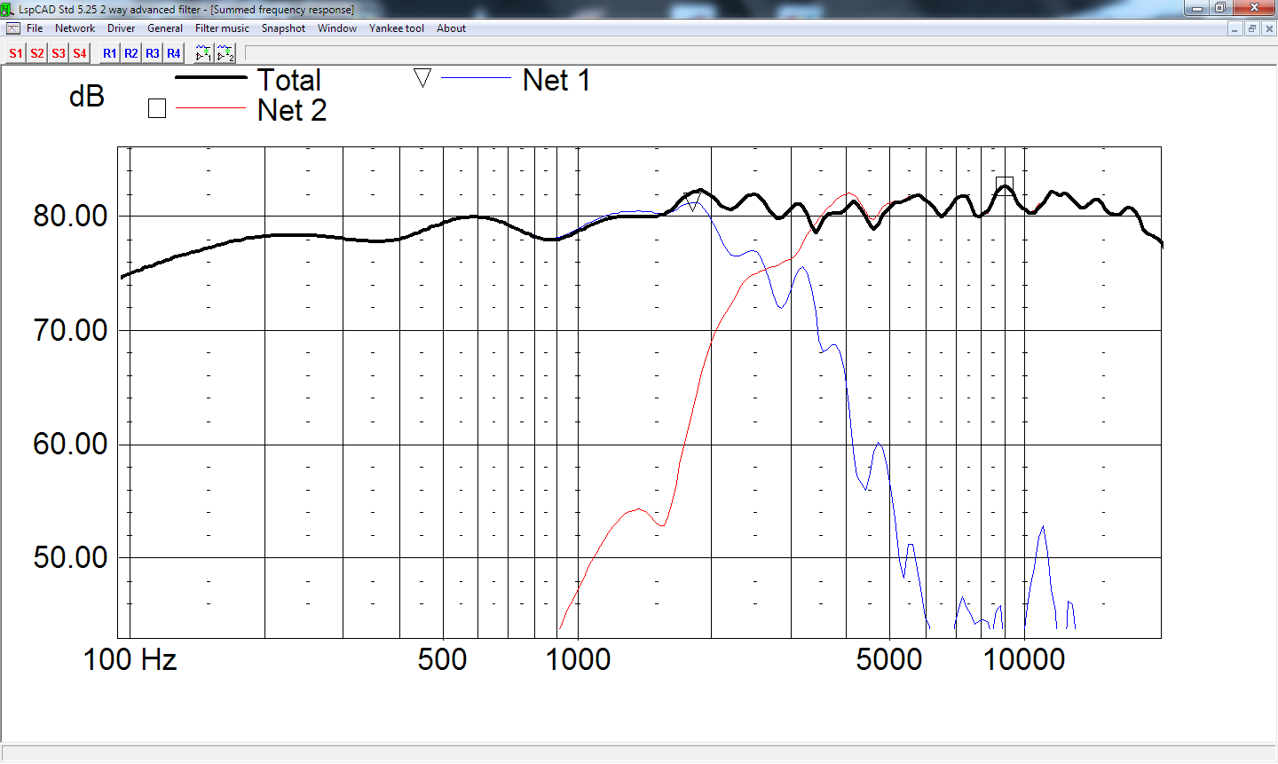Hier mal ein Schnell-Entwurf mit lediglich vier, recht preiswerten Bauteilen (1,2mH, 1,8µF, 0,82mH, 6,8Ohm):
