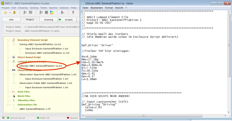 Die TSP des Treibers können nach Doppelklick auf das Skript 'LEScript ABEC Kantendiffraktion 1a' geändert werden: