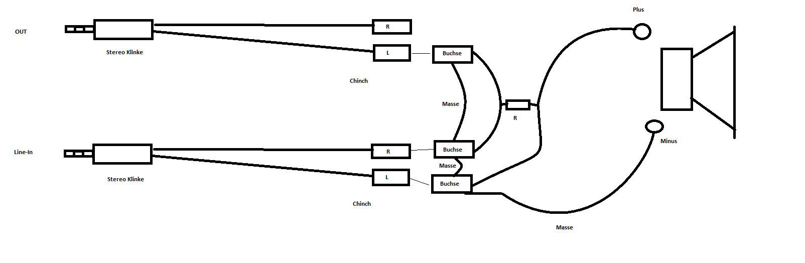 Ich hab nur so ein billig Multimeter das hier mal als Schnäppchen vorgestellt wurde. Anbei mal ein Schaubild wie ich das Kabel zusammen gefrickelt habe - ich verwende da also auch solche Y-Kabel Klinke auf RCA und RCA Buchse auf Klinke.