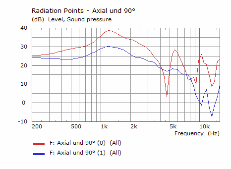Der Frequenzgang axial und 90° in 1m Abstand: