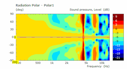 Da das jetzt sowieso schon recht gut aussieht und die Gültigkeit der SImulation bei hohen Frequenzen ohnehin wegen der fehlenden Information, welche Membranfläche bei zunehmenden Frequenzen noch abstrahlt, unklar ist, würde ich an der Stelle nicht mehr allzuviel Energie in die Optimierung der Kontur stecken, sondern die nächste Variante halt mal herstellen und messen.