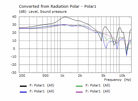 Was mir gefällt ist (i) der gleichmäßgere Verlauf zwischen der axialen und seitlichen Abstrahlung (die Deckenreflexion ähnelt der seitlichen Abstrahlung und nach Reflexion nicht stark anders/gefärbt klingen als der Direktschall) und (ii) der gleichmäßigere Abfall des Frequenzgangs ab ca 1,5kHz bis 16 kHz.