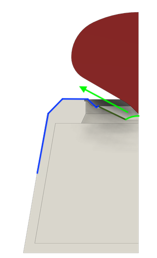Die innere Schräge vom blau gekennzeichneten Bereich gehört zum Korb. Kann man auf Bildern im Internet kaum erkennen.