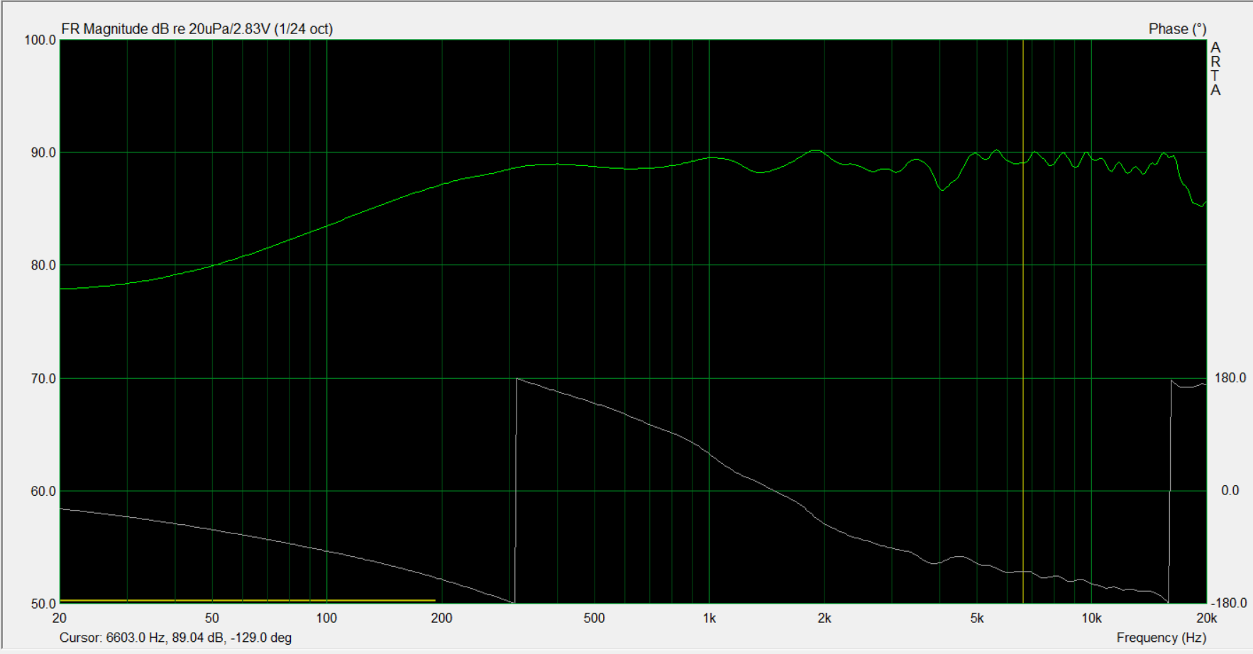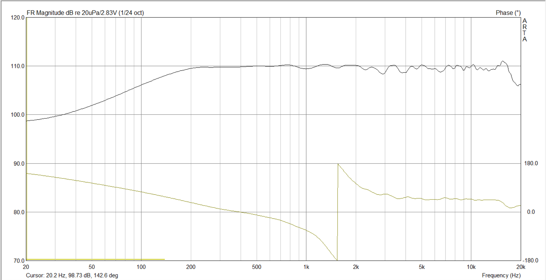 Ich bin ziemlich glücklich mit der Kiste. Den Dip bei 4kHz bekommt man auch aktiv nicht sinnvoll weg, das wird vermutlich am Waveguide liegen. Die kleine Senke davor tut ihr ganz gut, energiemässig passt das, nur eben im Frequenzgang fehlt da Ca 1 dB ( nagelt mich jetzt nicht drauf fest, muss die Messungen erst suchen). Sonst kann man ruhig das Lineal anlegen.