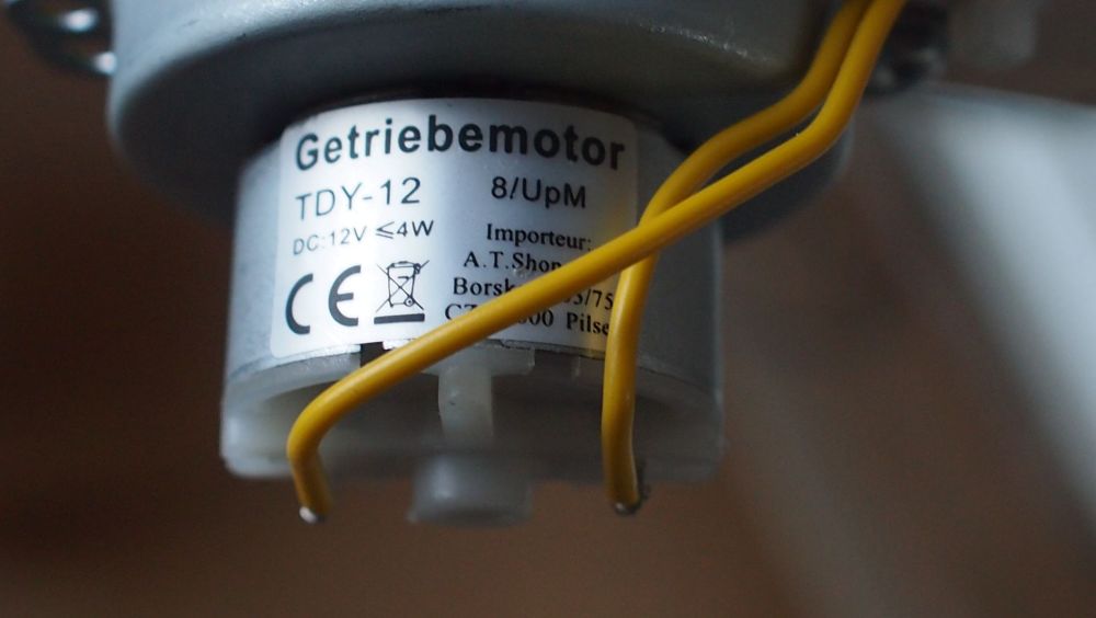 Habe den Motor durch einen Getriebemotor Typ TDY-12 mit 8 U/min ersetzt. Dieser baut nicht so tief wie der Ursprüngliche. Weiterhin habe ich den Schalter durch einen 2poligen ersetzt, damit kann ich jetzt links und rechts drehen.