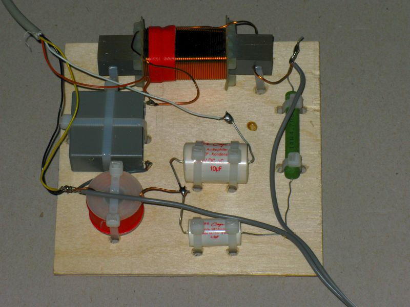 das es "etwas" hohl klingen wird, hatte ich im Vorfeld schon erwartet, dass große BR-Loch auf Frontseite entlässt halt ziemlich viel Mitteltonmüll in undefinierbarer Phasenlage. Das hört sich in etwa so an als wenn man sich beim Singen die Nase zu kreift- also verschnupft. Deshalb sollte man die Bassreflexöffnung besser nach hinten legen, auch wenn es Wirkungsgrad kostet.