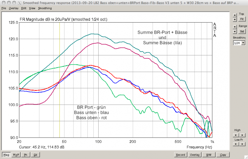 Es wurden zunächst einmal die Messungen des unteren und oberen Basses addiert (über die 'Load and Sum'-Funktion).