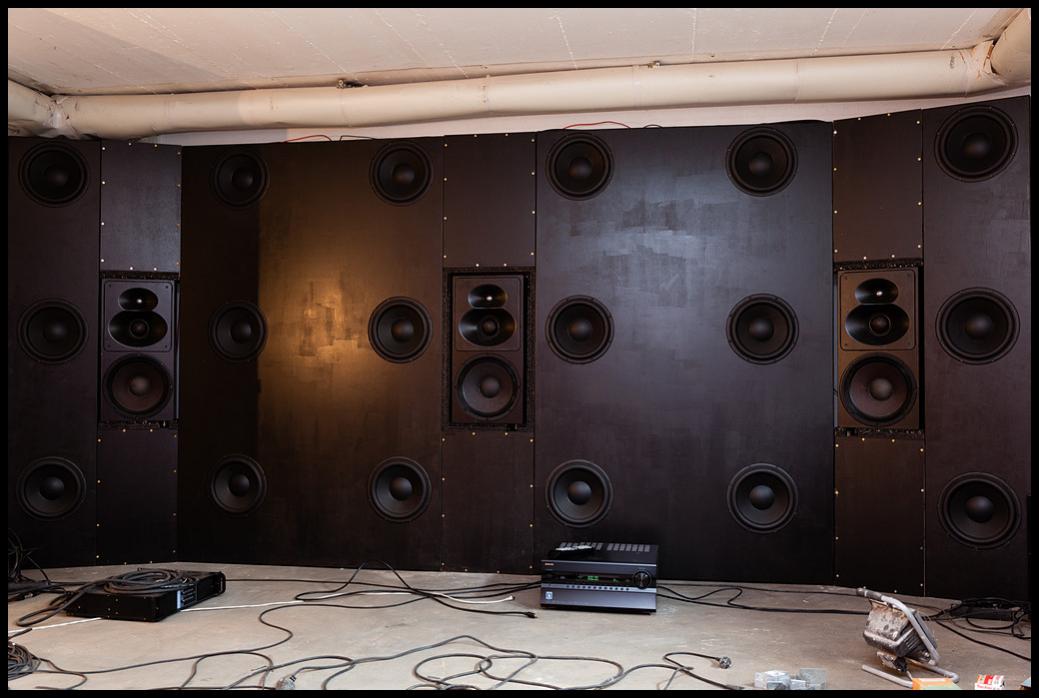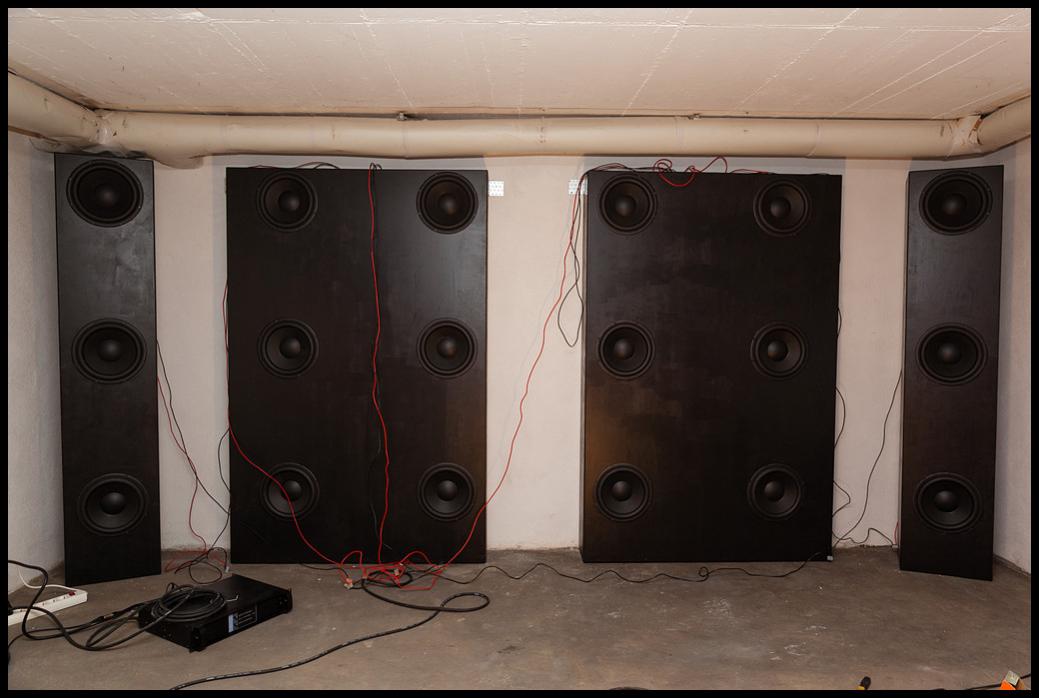 Heute haben wir die vier Subwoofergehäuse zu dritt aufgestellt. Am Ende war es doch nicht schwer, wie ich anfangs dachte.