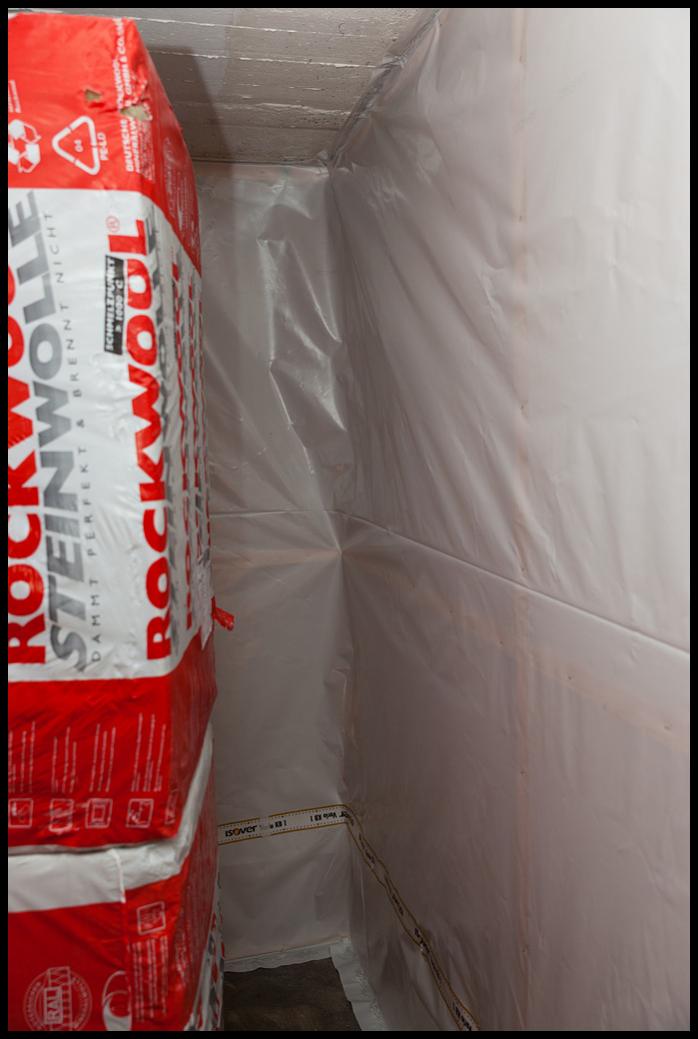 So, die Kammer für den Absorber ist fertig. Sie besteht aus Kanthölzern, die mit einer Dampfsperre bespannt sind. Die Lüfter für die Hinterbelüftung werde ich demnächst installieren. Die Vorderseite des Absorbers wird vorerst so bleiben, bis ich entscheide, wie es da hinten überhaupt weitergeht. Das hat momentan keine Priorität.
