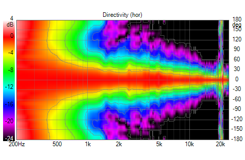 Das kann man grob auch in VituixCAD umsetzen. Man sollte auf jeden Fall die Contour Lines aktivieren, das erzeugt dann auch ein 3 dB Raster. Pegelumfang auf 30 dB ist auch besser als die gezeigten 56, dafür muss man in den Optionen die Directivity Span auf 20 dB stellen, dann bekommt man das normierte Sonogramm von +4 bis -24 dB, das ist hinreichend dicht an 30 dB. Von mir aus kann man auch die 25 dB Spanne wählen, dann bekommt man +5 bis -30 dB. Und man darf die Sonogramme auch in volle Auflösung exportieren (vorher Doppelklick drauf machen, dann wirds in groß angezeigt, rechtklick --> Export image). Man kann auch noch gerne unnötigen Bassbereich wegschneiden, indem man in den Optionen den darzustellenden Frequenzbereich anpasst.
