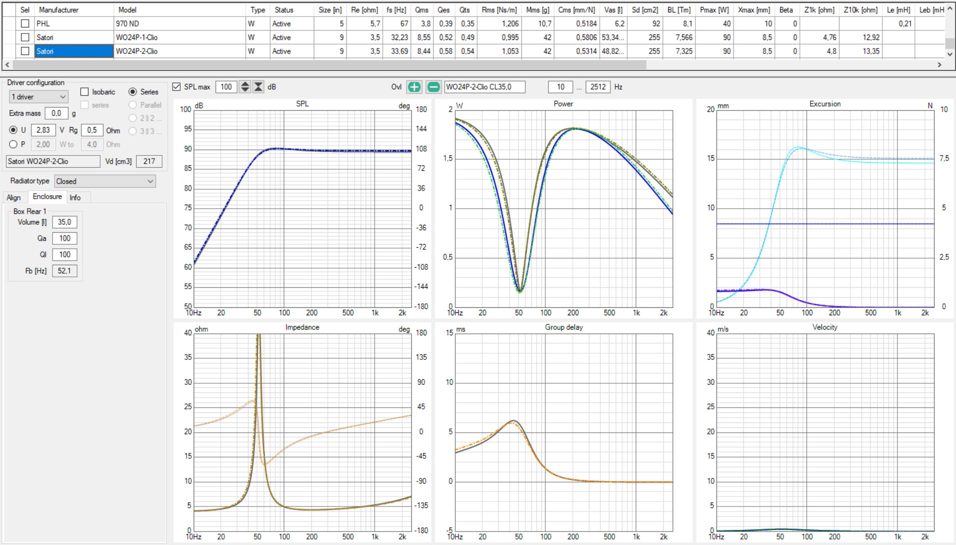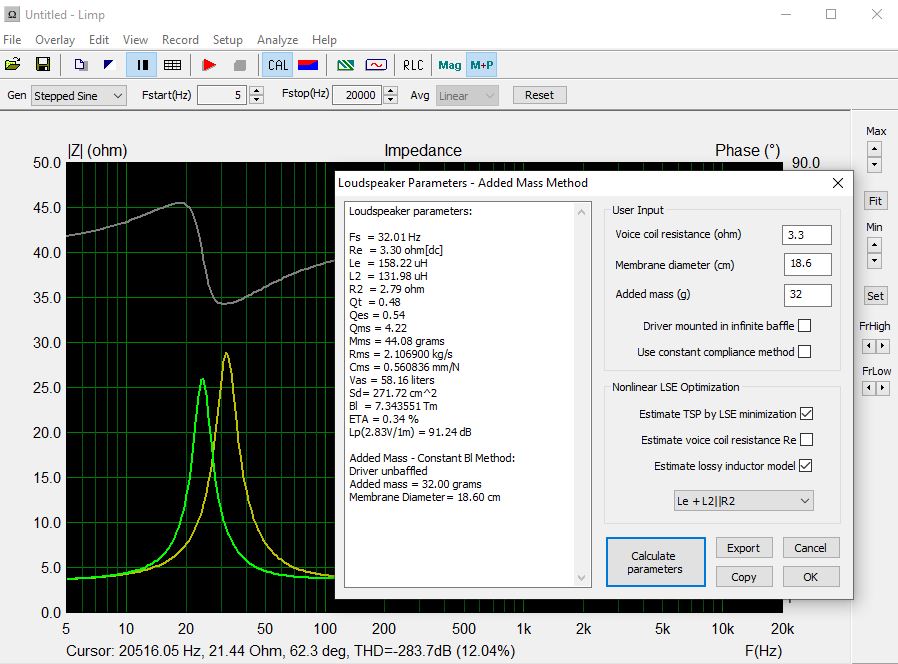 Vertrauen gibt angesichts dessen zmd. dass bei diversen von verschiedenen Usern mit verschiedener Hardware und Methodik ermittelten TSP doch oft nicht grob unterschiedliche Werte, bzw. zmd. keine Abweichungen die in (simuliert) signifikant anderem akustischen Verhalten resultieren, rauskommen. Dieser Build und die Messungen am WO24P-4 sind gleich ein gutes Beispiel. Weiteres Beispiel: 15LB075-UW4.