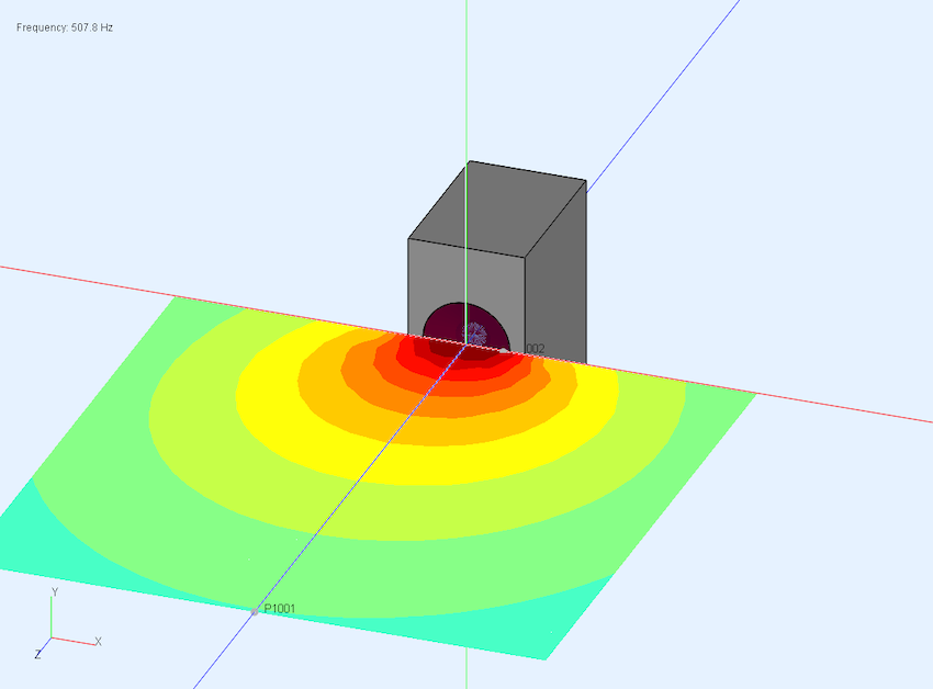 Zunächst die vereinfachte Simulation des 18W im Gehäuse (mit Subdomäne vor der Membran zum Gehäuse):