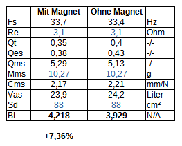 Und: Die Boxen sounden recht "Monitorhaft" d.h. nicht "schön" sondern eher trocken und klar. Der Bass ist irgenwie etwas "punchy", die Eigenschaft legt der TMT trotzt Zusatzmagnet nicht ab. Hätte auch Lust noch mal den SB15CRC30 zu testen in der Box, der hat wohl neben der anderen Membran eine leicht andere Aufhängung und etwas mehr Maximalhub.