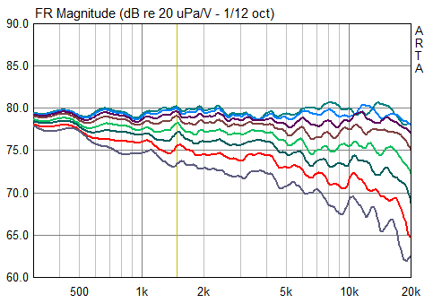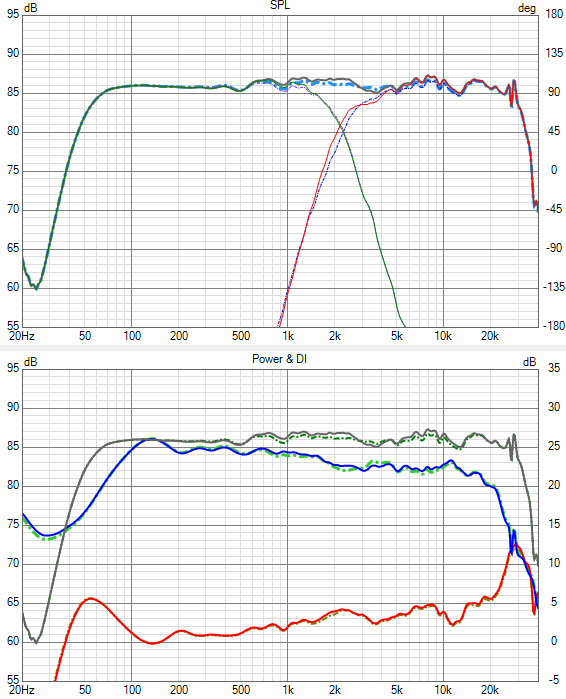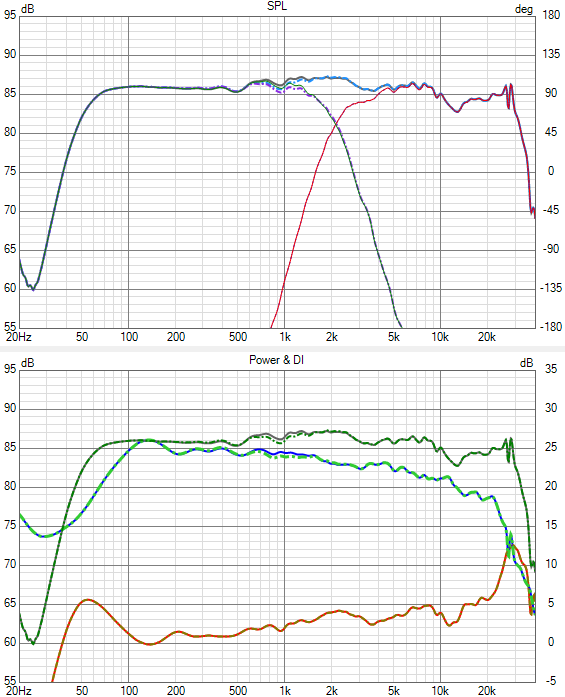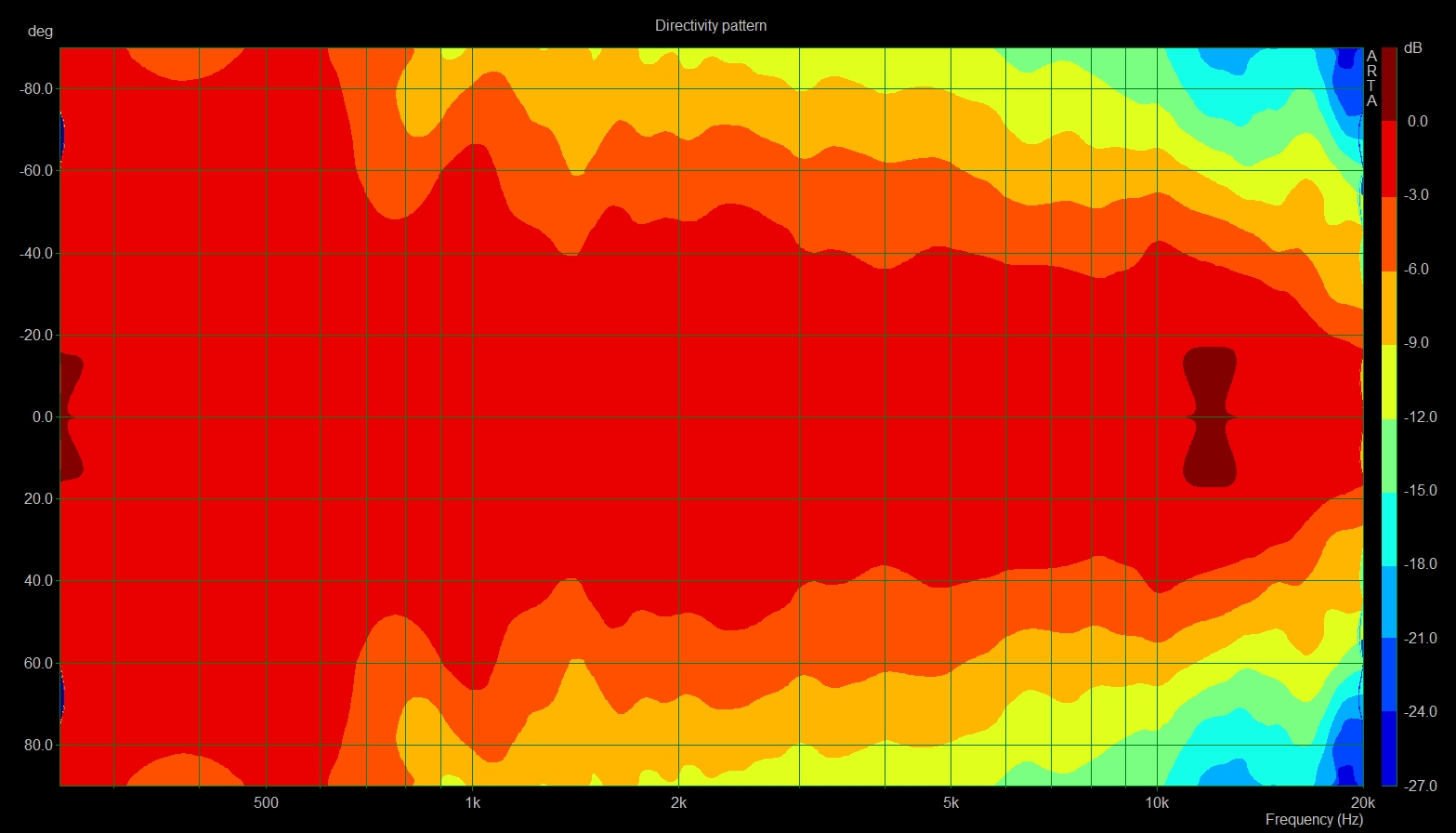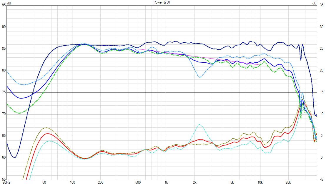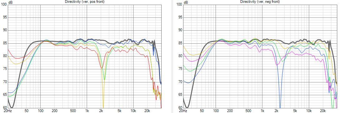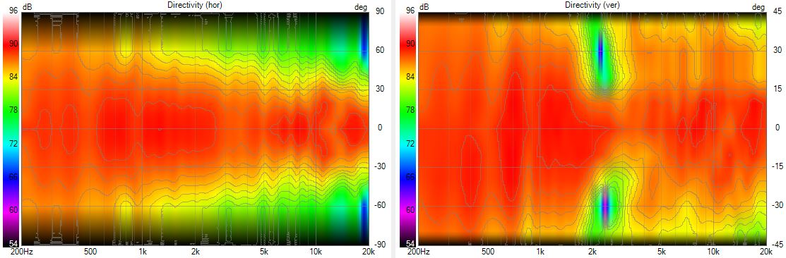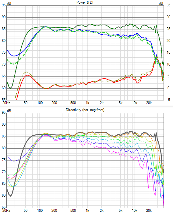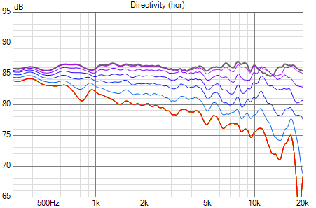 Interessant ist , dass das Abstrahlverhalten im Hochton - Breitbandige Einschnürung 5-10kHz, starke Aufweitung / Peak 11-12kHz - wohl Charakteristisch für den DXT in so einer Gehäuseform ist.