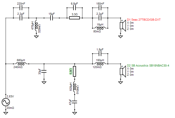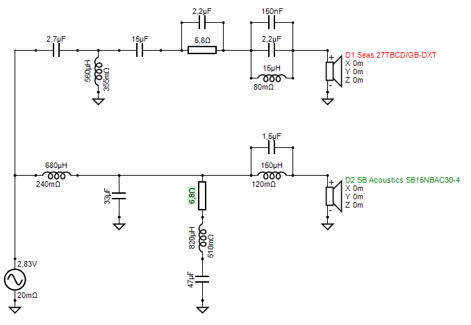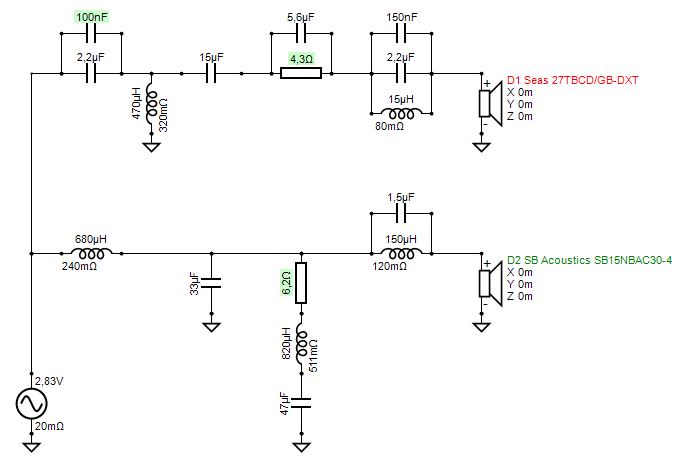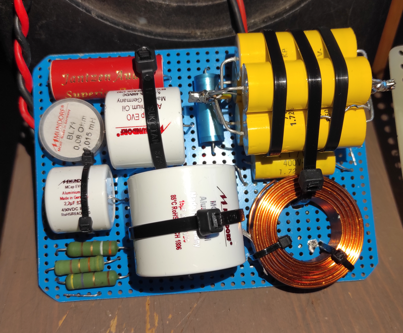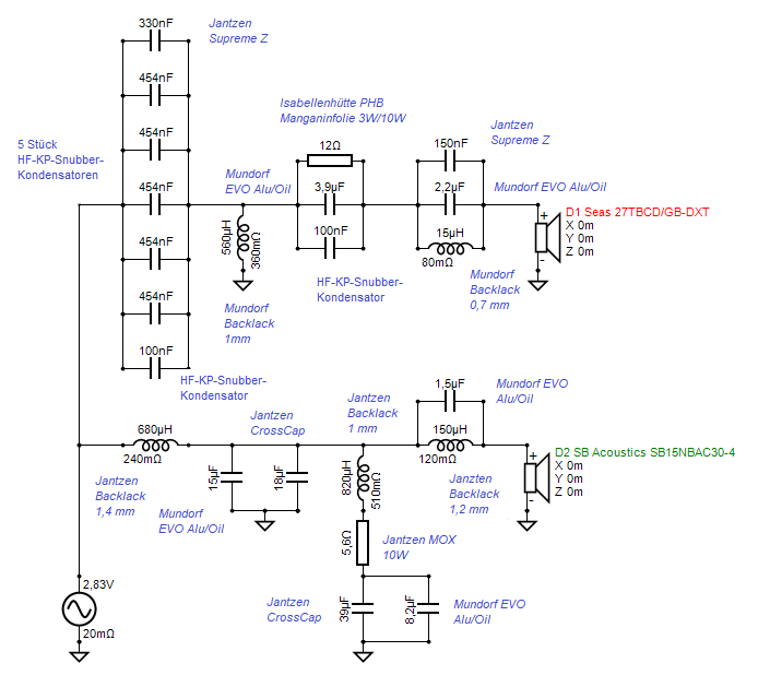 Naja fast, die wesenliche HT-Topologie ist hier aber übernommen (original siehe https://www.diy-hifi-forum.eu/forum/...l=1#post312684). Und etwas weniger Bafflestepkompensation durch einen größeren Widerstand im TMT-Parallelsaugkreis.