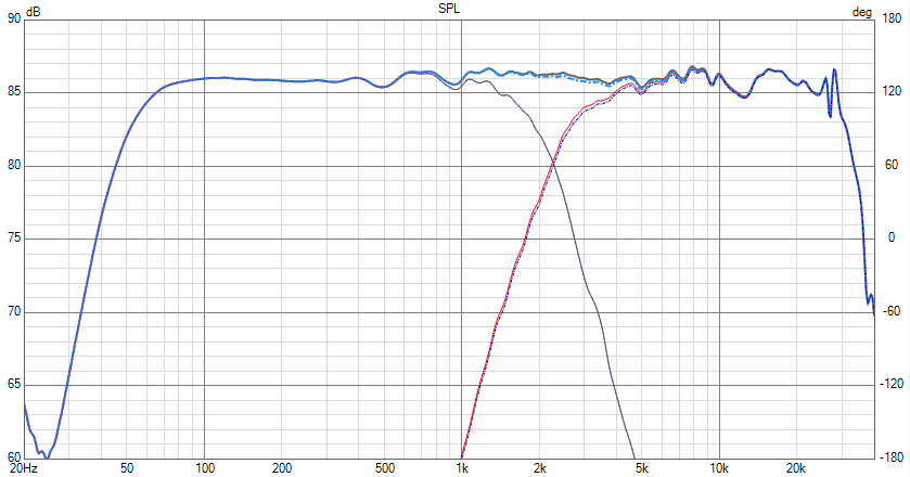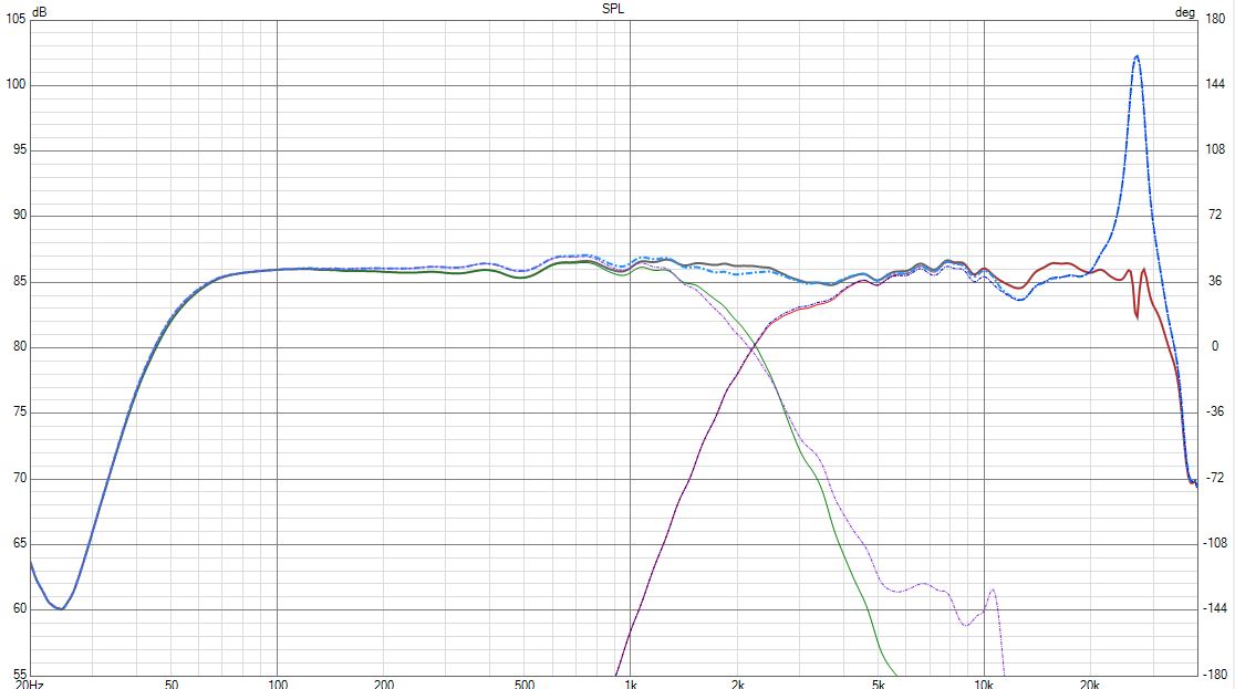 Hier im Vergleich mit der ursprünglichen MkIII-Weiche; etwas weniger Bafflestepkompensation, Bereich um 4kHz abgesenkt: