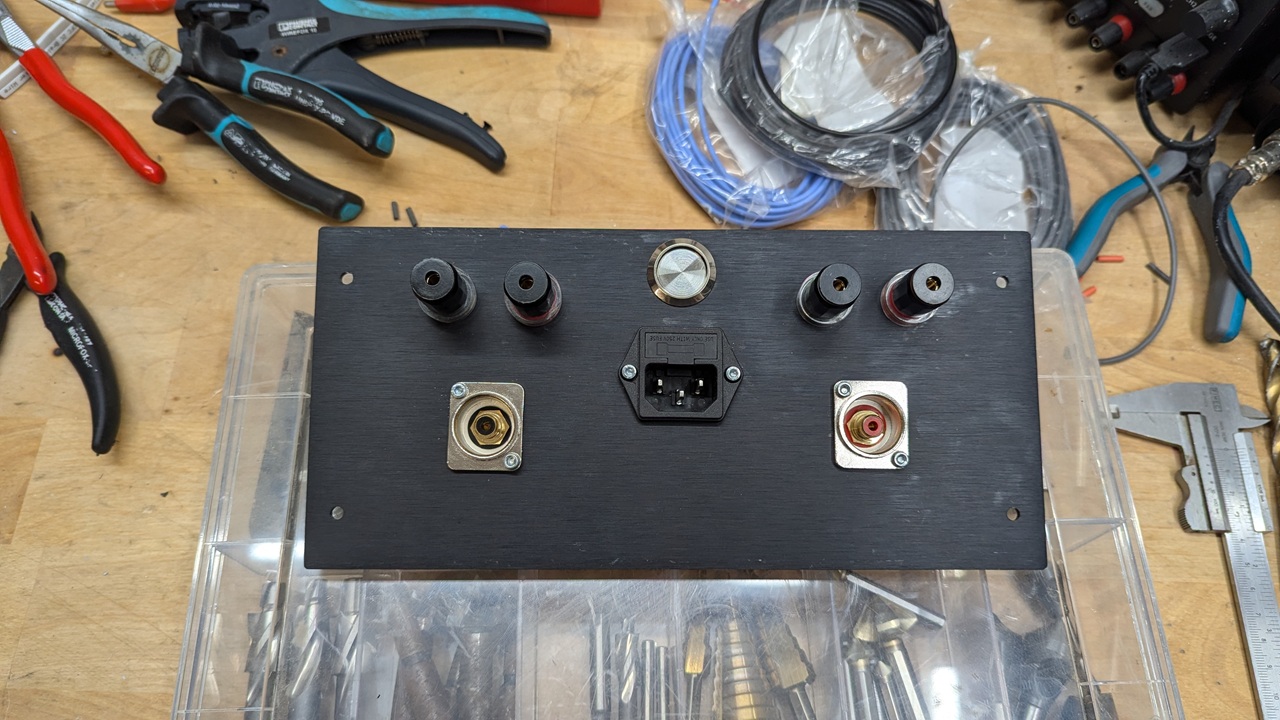 Jetzt erst mal noch die Rückwand bohren und mit Dremel die Kaltgerätebuchse ausschneiden...