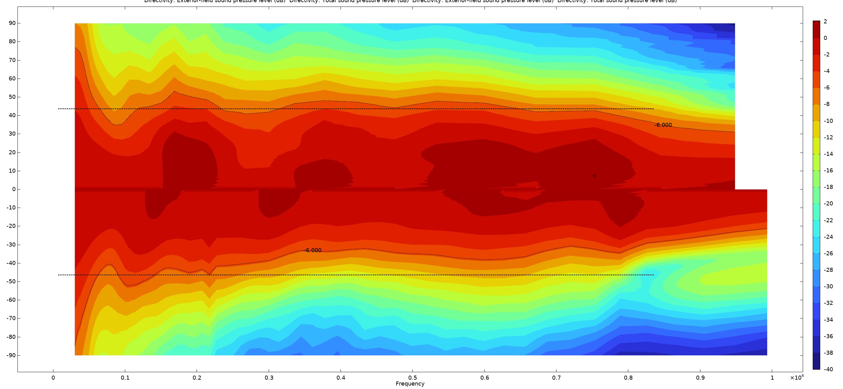 (ii) Viel schlimmer: Bei Schallführungen hängen Abstrahlverhalten (Abstrahlwinkel), Hornladung, untere und obere Grenzfrequenz immer zusammen und bedingen sich gegenseitig. Möchte ich z.B. ein breites Abstrahlverhalten, werde ich in der Ladung bei niedrigen Frequenzen eingeschränkt. Oder andersrum: Ein Horn mit engem Abstahlverhalten kann prima zu niedrigeren Frequenzen hin laden, da dessen Kontur zur Formung des Abstrahlverhaltens über einen größeren Bereich eher lang sein wird. Lösungswege sind zum Beispiel Hörner mit 'Diffraktionsschlitz' (z.B. Mantaray-Horn), die reativ lang sein können und nach dem Weg zum Diffraktionsschlitz recht schnell und breit öffnen (siehe auch die Entwicklung von 3ee, um da Abstrahlverhalten getrennt vertikal und horizontal zu formen).