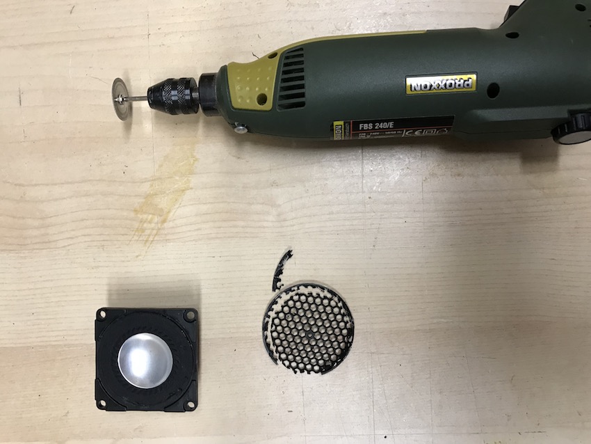 Das Schutzgitter ist doch nur leicht verklebt, es wird hauptsächlich durch Spannung gehalten. Sobald man das Gitter durchsäscht (oder durchzwickt)...