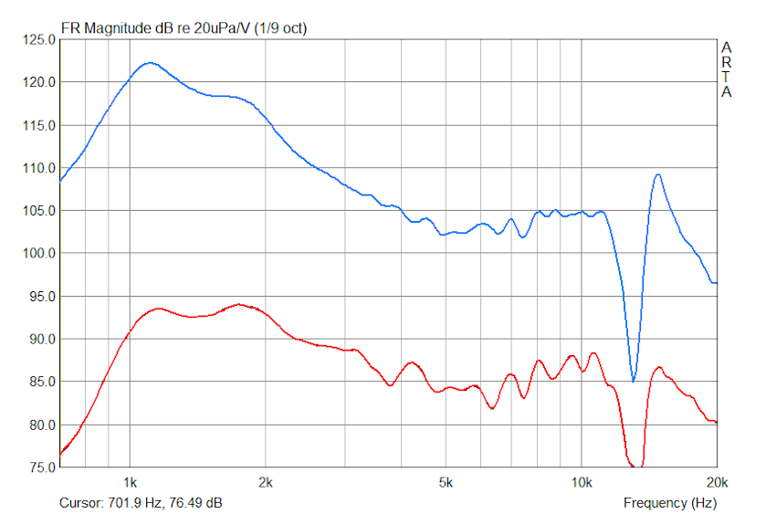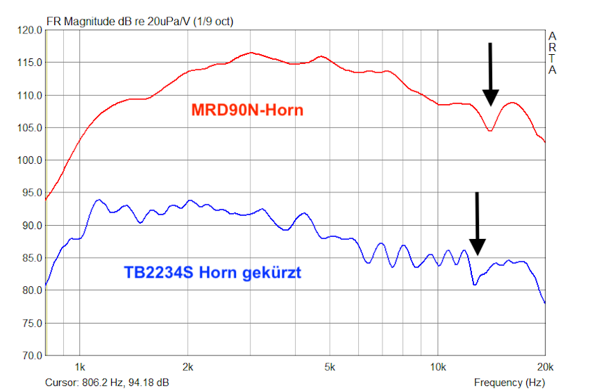 Hier Messungen vertikal des Hörnchens am Monacro MRD90N Treiber: