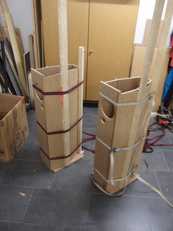 Die 3mm Seitenwände schallwandseitig einfach festzuschrauben und genügen Spangurte zu verweden, dass Querlaten überflüssig sind, hat das Ganze kinderleicht gemacht.