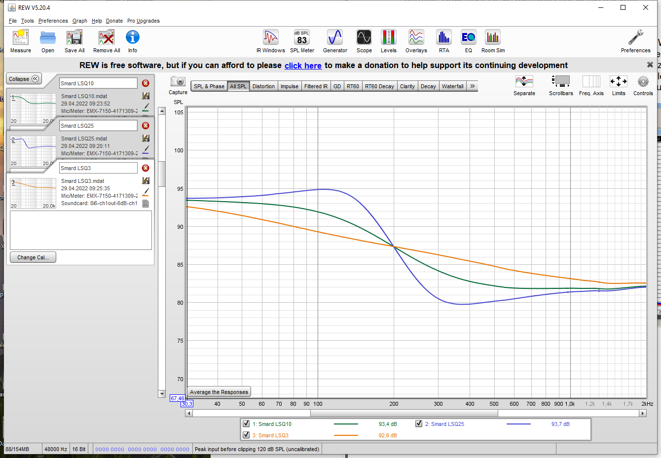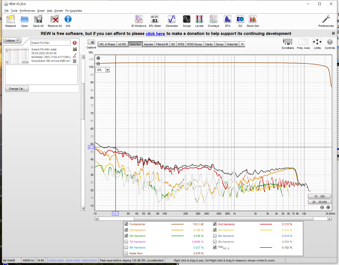 Hallo, wurden die Frequenzgang Messung mit 44,1kHz oder 48kHz Abtastrate in der Soundkarten Einstellung durchgeführt?