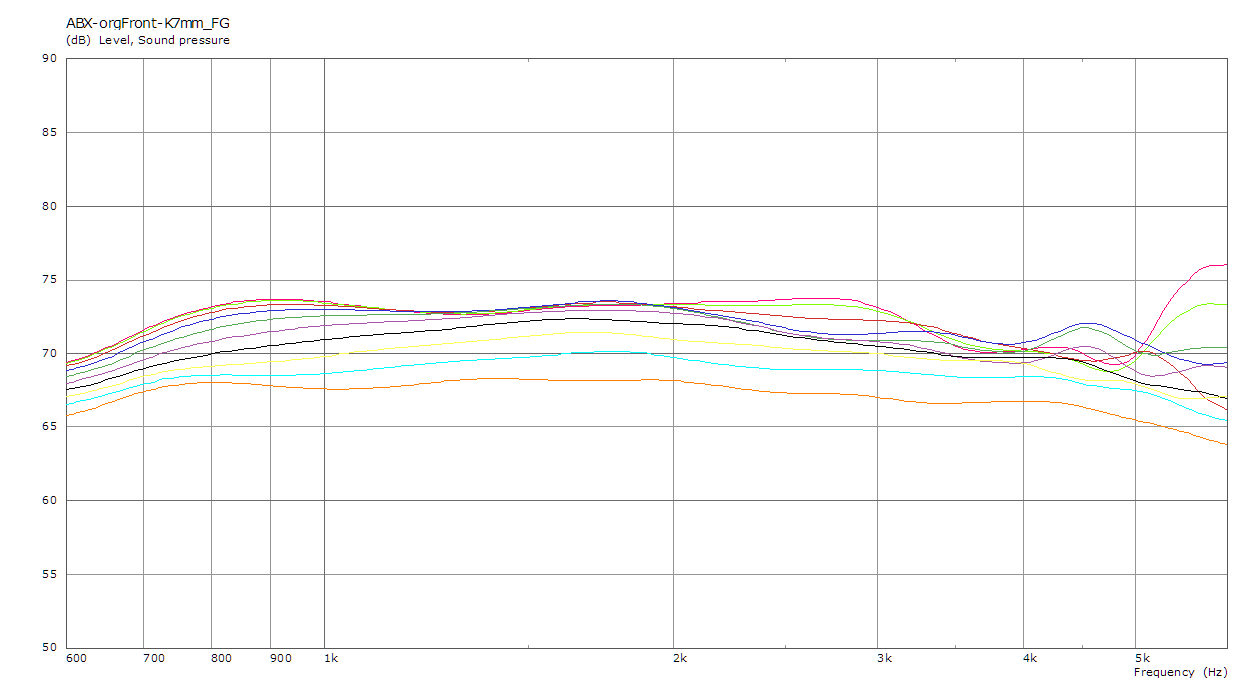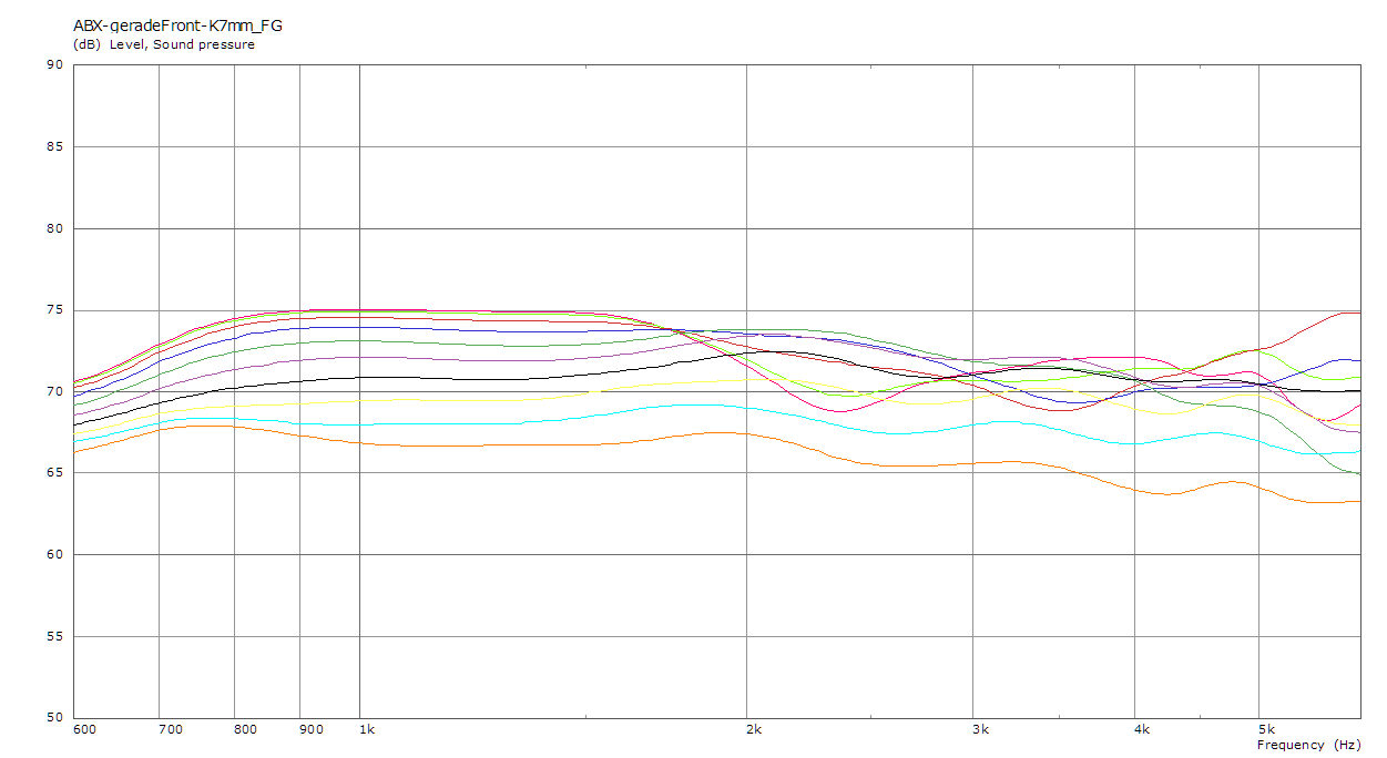 Im Overlay von 0-90° ist tendenziell eine leicht stärkere Aufweitung um 4-6 KHz mit Radien zu sehen.