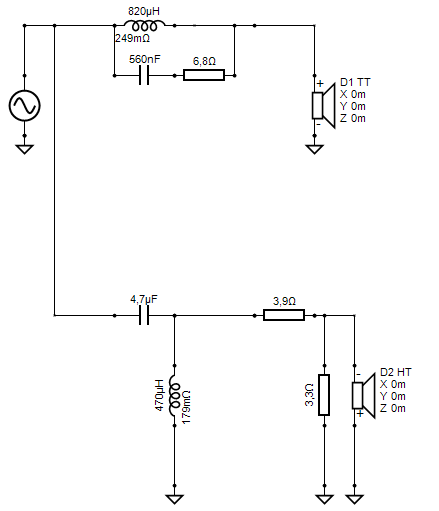 Per miniDSP bei 1500Hz/12dB getrennt. HT -3dB