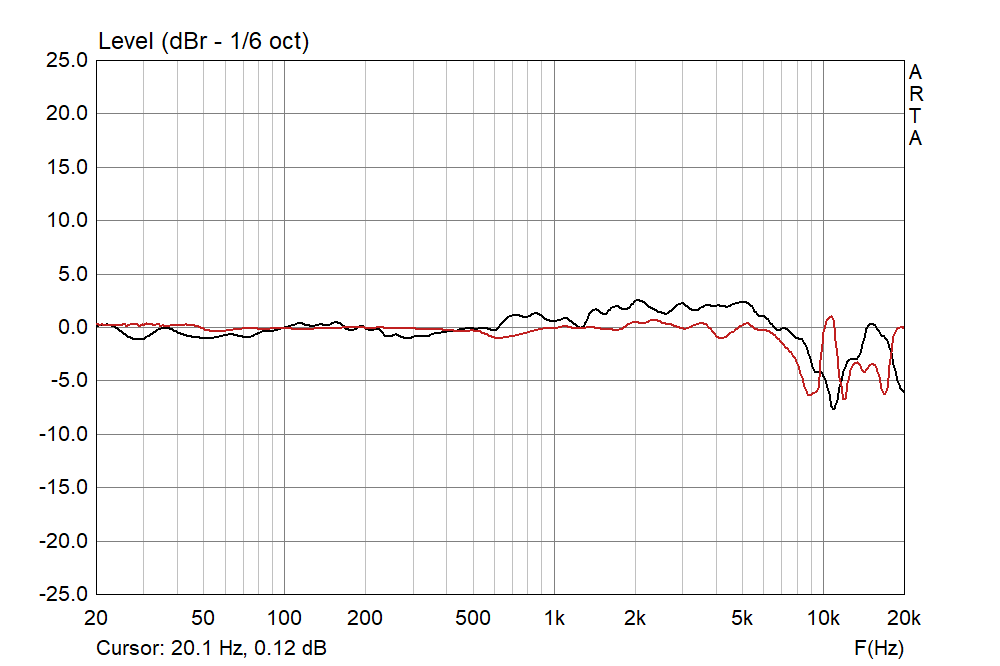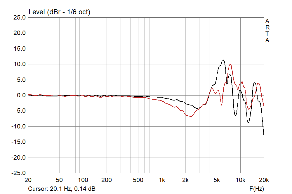 Bafflestep (Einfluss der verschiedenen Schallwandgrößen) gab's genau genommen noch zu berücksichtigen. Macht zwischen zwei Lautsprechern dieser Größenordnung das Kraut nicht fett; <1 dB im Frequenzbereich in Frage. Die gemessene Differenz erklärt es also nicht; aber trotzdem eine Erwähnung wert: