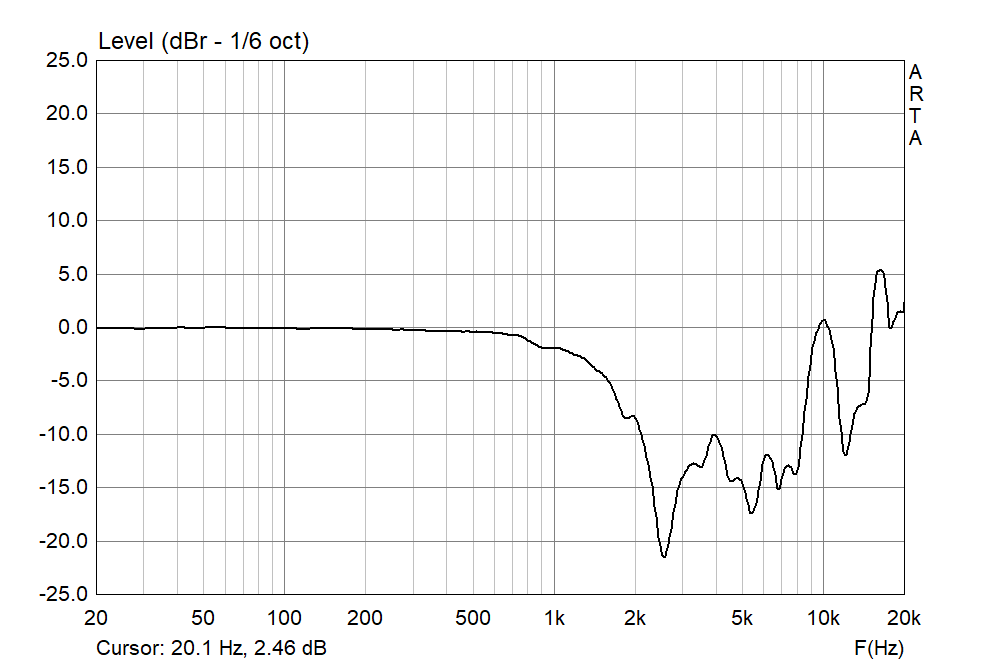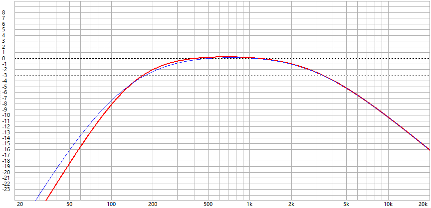 Anbei noch ein genauerer Klangeindruck: Die subjektive Verbesserung war weniger dass der Mitteltöner mit der Beschaltung beim gleichen Pegel weniger "spitz" klingt, was ich eher Klirr zuordnen würde (harmonische addieren sich zur fundamentalen -> Tonalität wird heller / höhenlastiger). Davon merkt man eigtl. generell, unabhängig von Pegel, bei dem Chassis wenig.